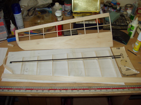 I could now add the leading & trailing edges & the 1/16” balsa covering to complete the Dee box. The leading edge shape is critical and has to be sanded to the exact angle of 18.2Deg for the top edge & 6.75Deg on the bottom before the final shaping.