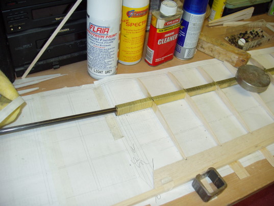 After bonding the joiner boxes to the spar they are wrapped with 2.5 Oz glass cloth, Kevlar bound & wetted out with thinned epoxy. The complete spar is then Kevlar bound.