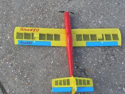 David Enticott won the Christmas Quiz. His prize was an Xtra 480. This is a small electric powered aircraft, 400 size. I bought the kit from David and fitted an Axi outrunner brushless motor up front. Its a lovely little model and is quite aerobatic. The Axi motor was changed for a Kontronic Smile. This motor is smaller in size than a standard brushed 400. The model is a low wing type and spans 1 metre. Wings are all built up with a top and bottom spar and a D box front end. It has a fibre glass fuselage. I havent fitted the wire undercarriage to the wing, I usually fly off grass, and therefore, the wheels would just not work. Mind you, using it at Beaulieu means VERY careful landings (avoid tarmac).