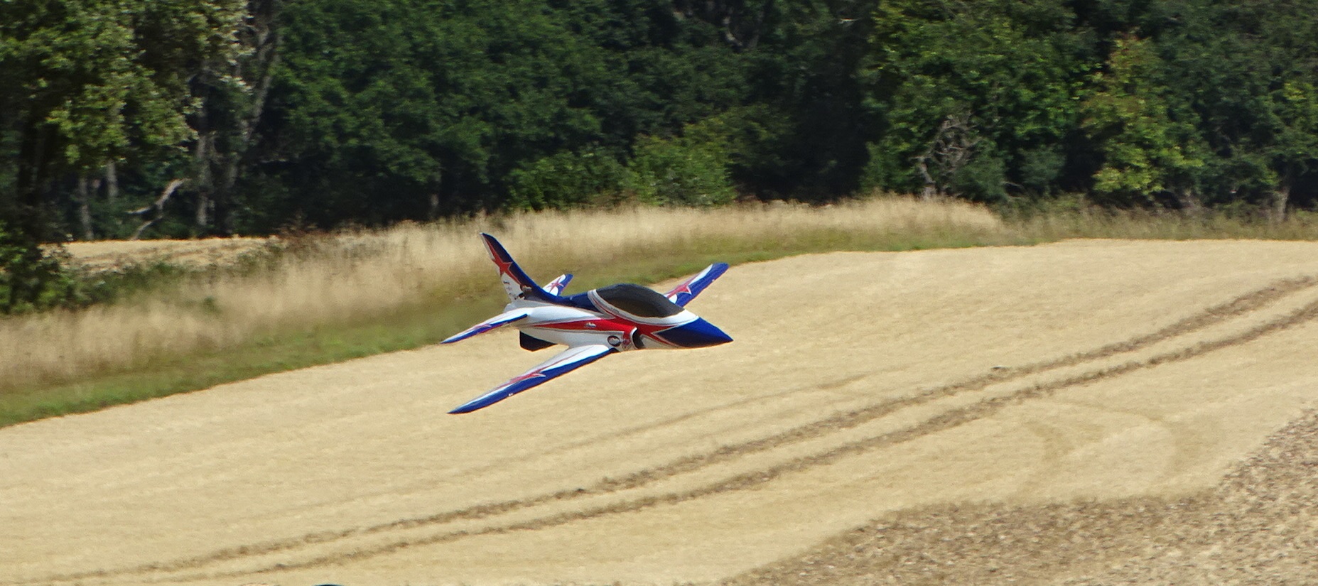 POPHAM 2022 This was last year’s display, but much bigger, with extra turbines and far more stalls. But was it better or, at least as good? Trevor drove Richard and me at an early hour and we arrived in good time to get a front row seat, with the display due to start at 10am. There was far more to see and buy, perhaps 30 stalls selling modelling or associated gear (and one with F**k Putin T shirts, beer glasses etc etc). The big marquee was much better, with model railways all along one wall and loads of mouth-watering second hand rolling stock (yes, I’m a railway modeller in denial) and in one corner a demo of quad FPV racing, with tiny quads ripping round obstacles and a guy in a chair and headset controlling it. Far from losing his balance every time the little machine banked and turned at lightning speed, he just sat still. I suspect his skill level was a power or two above mine. The weather was pretty much a duplicate of last year, too breezy for me to fly but well within the comfort zone of the demo boys and girls. The range of models was not quite as large, with far more turbines, EDFs and big 3-D Extra-types and fewer scale models. The helicopters were just as underwhelming (I’ve seen Farhad do much better display), a large racing quad demo was impressive but a bit meh for non afficionados Unlike last year’s glider mass launch this time there was a superb large vintage model by the Ghost Squadron, and for contrast a 5, maybe 6m span monster ASK with pop-up power pod. Both were towed to height and the vintage one looked so good against the clouds and blue sky. The other one turned height to speed and scythed round in front of us a number of times until at last the pilot had to pop up his power and get away. It was very impressive. A new one this year was a mass launch of the little Arrows EDFs, about 14 of them, it was hard to keep track. They whooshed around the sky fast and furious without a single mid-air – astonishing! The displays were very good and got lots of applause. By far the most popular was Laura, a flier whose inverted landing approach and very last second pull up to land got the biggest shout of the day. Of the few scale models that we saw, the best was a Yak 11. The owner had spent all day trying to get the engine to fire up and when he finally got it going, his display was excellent, full of clean, accurate scale flying, not a hurried move, not a non-scale moment. A real pleasure to watch after all the high power aerobatics of the works teams. It looks good doesn’t it? It was only when it was on the ground that you appreciated that at 1/3rd scale how huge it was! I thought that it was as good as last year. The commentary was better, but plagued by inadequate display information from the fliers or their teams, so that he was often lost for words when they were most important. The stalls were bigger and better, the coffee just as good and the administration first class. And all for only £8 for both days! Although when I said this in the car going home, Trevor and Richard laughed and asked why I hadn’t applied for the old folks discount… Some photos looked better than others - the Man in Black could have been better positioned! Finally…at an instant, everyone stood up and started looking over to the left, going oooh and ahh. A gas turbine model (a Futura?) had crashed in the field opposite and set fire to the wheat. The airfield fire crew and engine were on it within 30 seconds and the fire was put out and displays resumed after a short break. But I bet the BMFA insurers will be in demand!