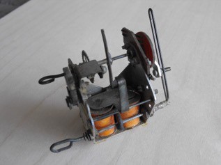 In simple terms, when receiving no signal this receiver passed a current of about 2.5 milliamps through a sensitive relay whose contacts remained open..When a signal was received the current dropped to nearly zero causing the relay contacts to close. So, by switching the ground based transmitter on and off via the hand held switch, contacts in the receiver would open and close in sympathy. To provide the necessary movement of the rudder, a rubber powered four point actuator was used which was connected to the receiver relay contacts via a 1.5v dry battery. This was a home-made device which at the time, turned out to be about the most reliable item in the model. Since only functional drawings were available, its construction was a process of trial and error until a satisfactory design was achieved.. Much later in the 50s these became commercially available from a firm called Elmic. With this setup, flying - or perhaps I should say steering a model - was really quite simple First the receiver was switched on then by pressing the transmitter switch "on" and holding, the rudder would flip a set amount in one direction. Releasing the transmitter switch ie, turning the transmitter "off" would return the rudder to neutral. The second press of the transmitter switch would flip the rudder in the opposite direction. It really worked very well - at least once you had got used to the switching sequence. More complicated actuators were made with delayed sequencing in an effort to provide elevator and speed control of the diesels. When playing about with the fuel mix, I had noticed that a higher ratio of castor oil caused the motor to run slower. The idea was that a two mix fuel supply would feed the engine - one for fast running ,the other for slow and that a second actuator, quick blipped within the delay of the first, would cause a valve to switch between the two. Unfortunately, the diesel didn’t respond well to the dual fuel mix which required different throttle and compression settings for each mix.. Ah well, you can’t win them all. It was amusing to find that with extreme castor oil “doping”, a motor could be made to run so slowly that it could easily be hand held while popping away.