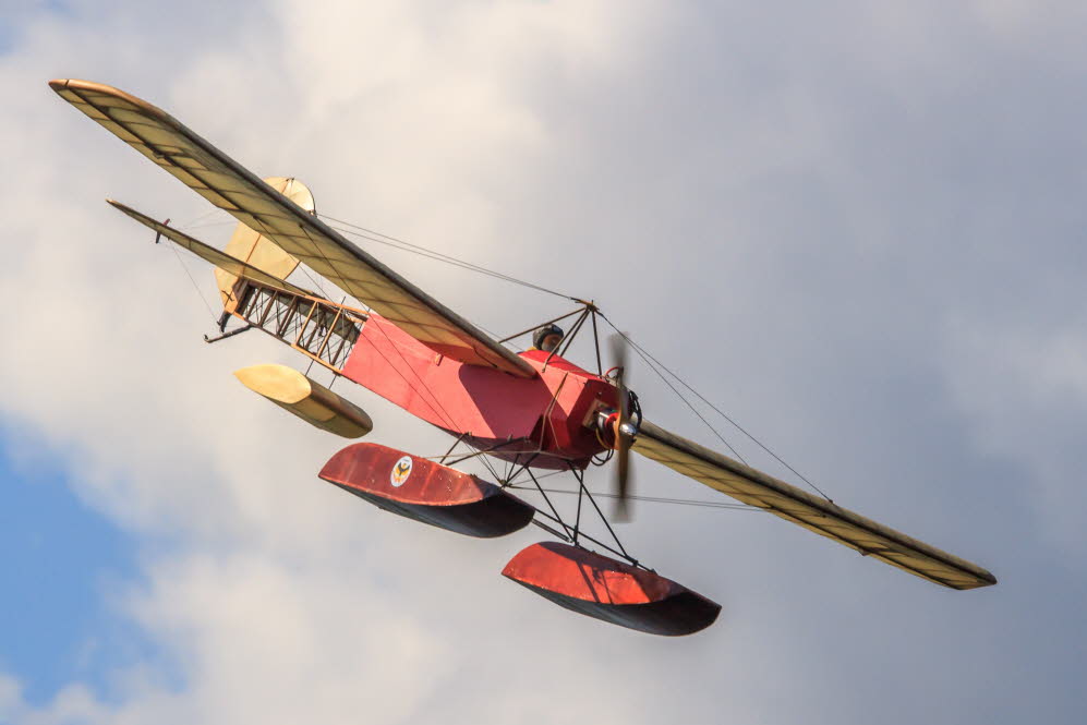 David Bintcliffe has a large collection of water planes. This elderly Antic is nicely dressed up as a Bleriot